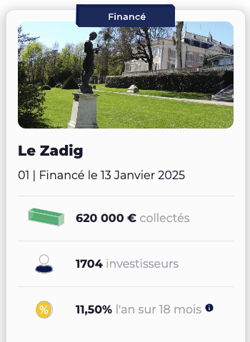 Un petit investissement le 30/12/2024 sur le projet Le Zadig disponible sur la Première Brique.